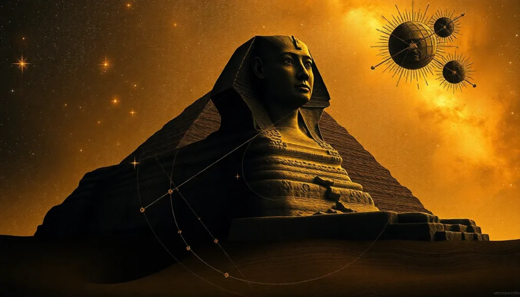 A Esfinge, tendo a forma de um leão, aponta astronomicamente para a constelação de Leão, indicando que ela foi construída durante o período em que essa constelação estava no céu, no 11º milênio a.C.